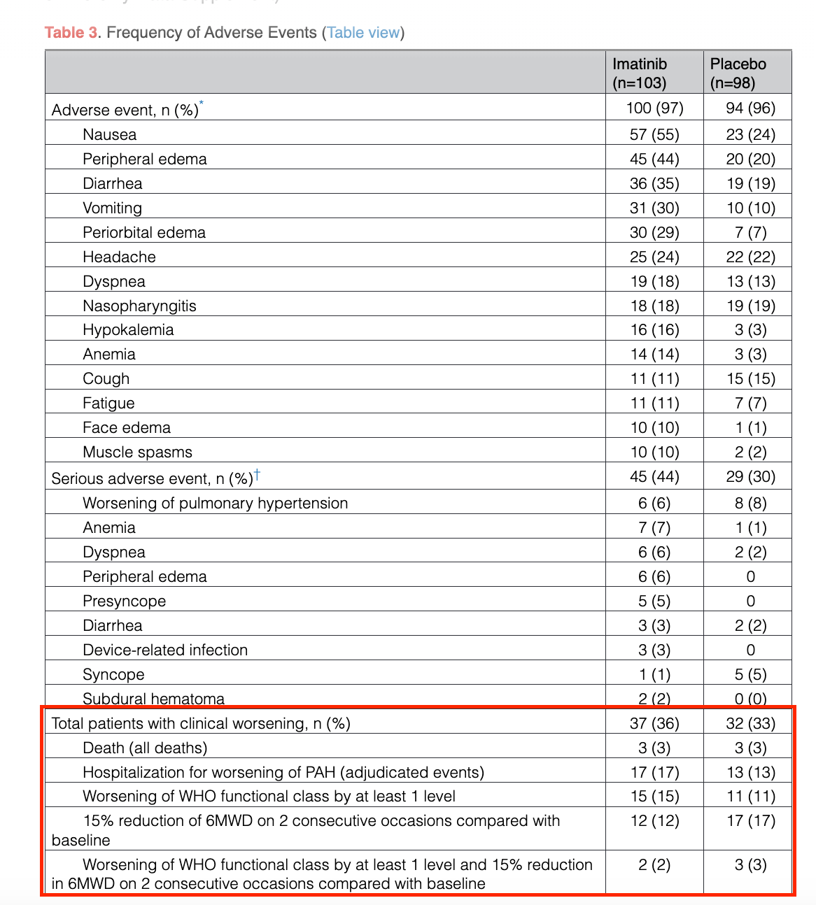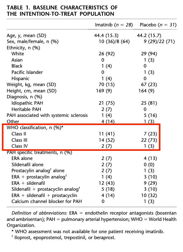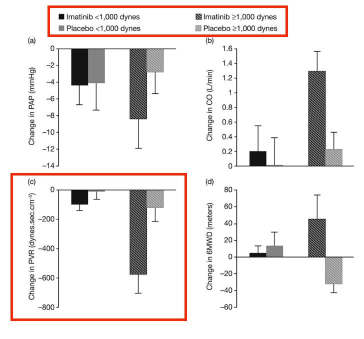 Other trials run recently did have higher PVR baselines, like the STELLAR trial they cite for example. Also true. One of the reasons some are more inclined to believe this subgroup than usual is that the imatinib Ph2 data also shows a similar bias toward more severe patients: