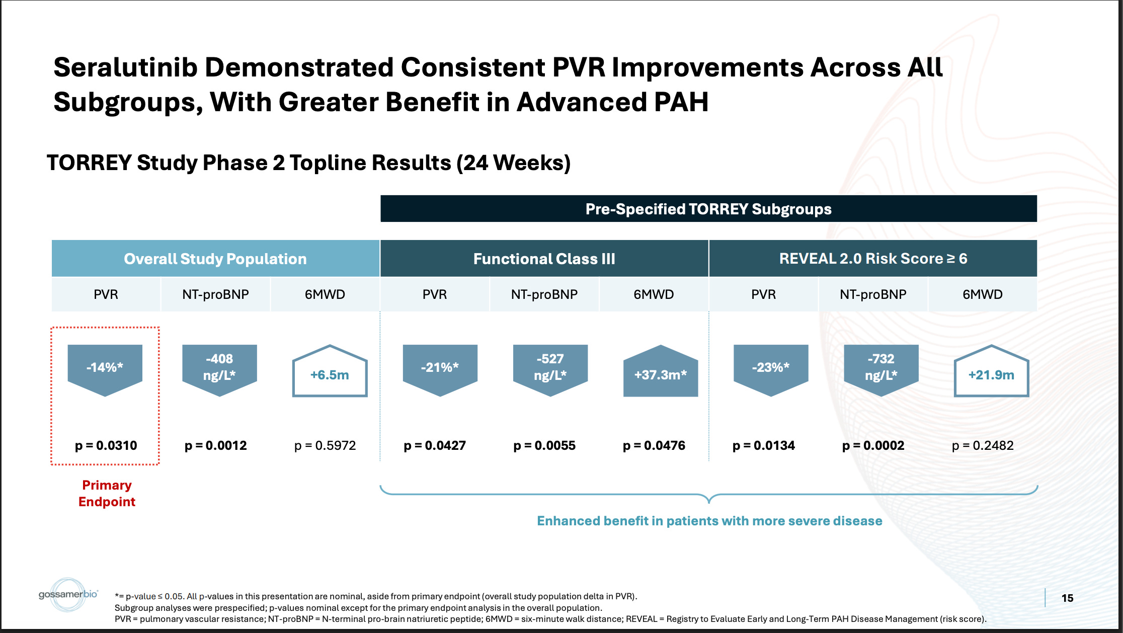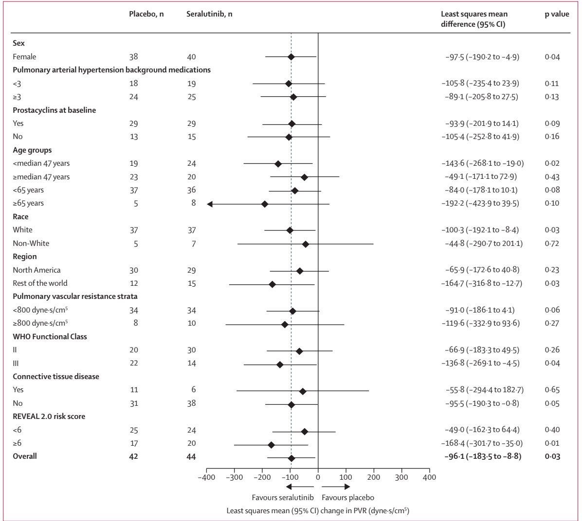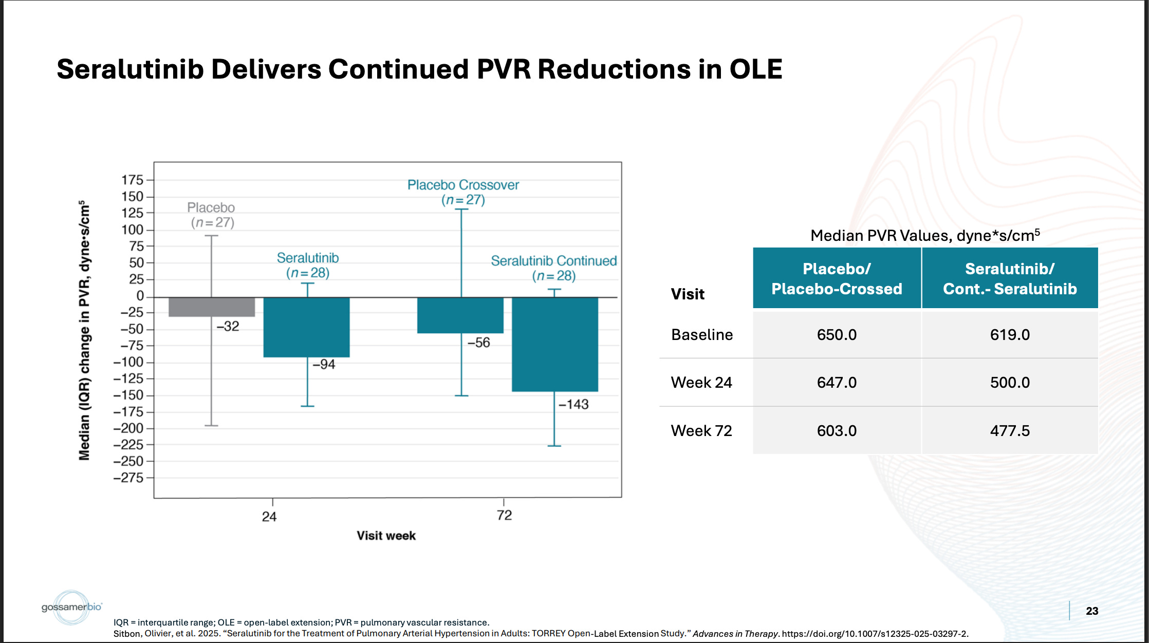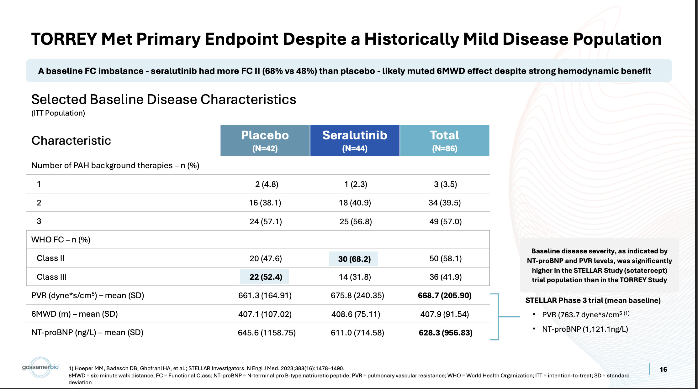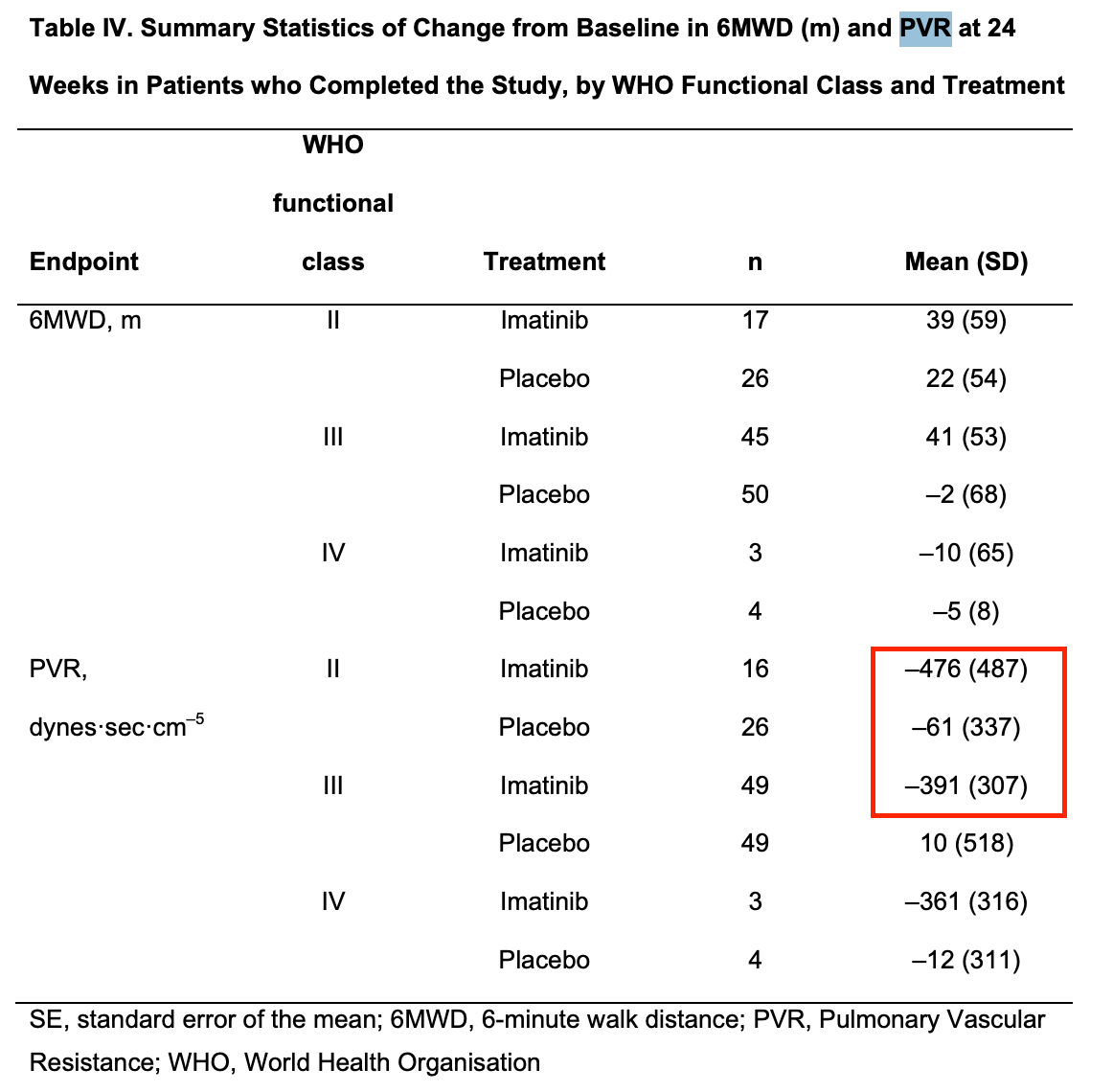 Not to the extent seen today, I will concede, but it’s still worth noting that this did not prevent them from showing more intriguing POC. The other important thing here is that the imatinib data establishes this separation in effect by stratifying by PVR. The seralutinib data shows this using WHO class. I find this interesting because the PVR stratification is in the TORREY pub, and it’s very underwhelming: